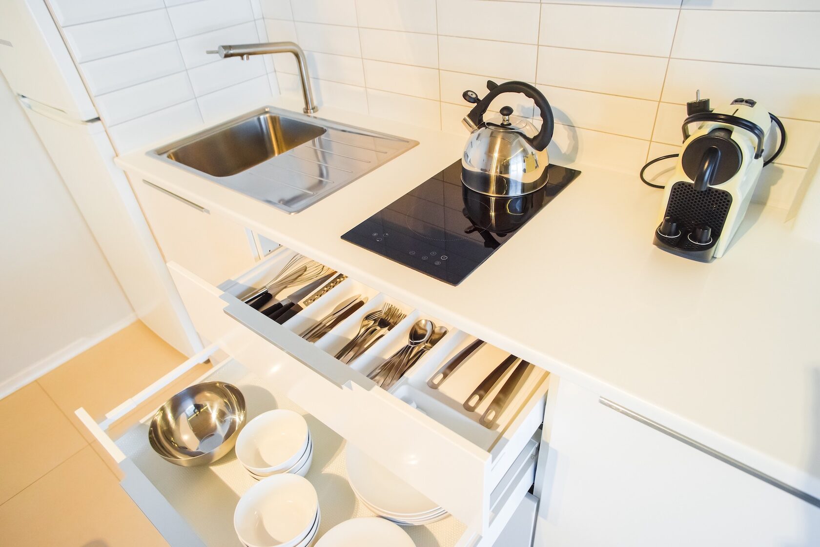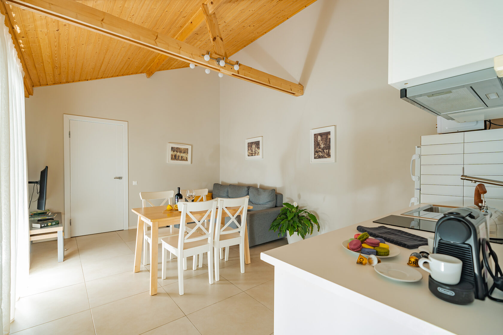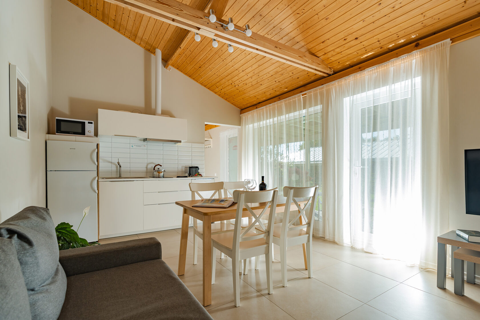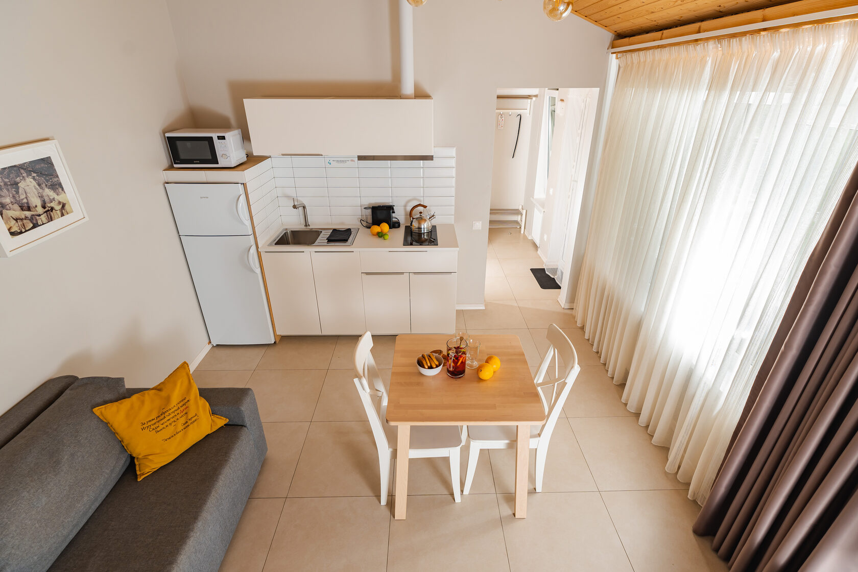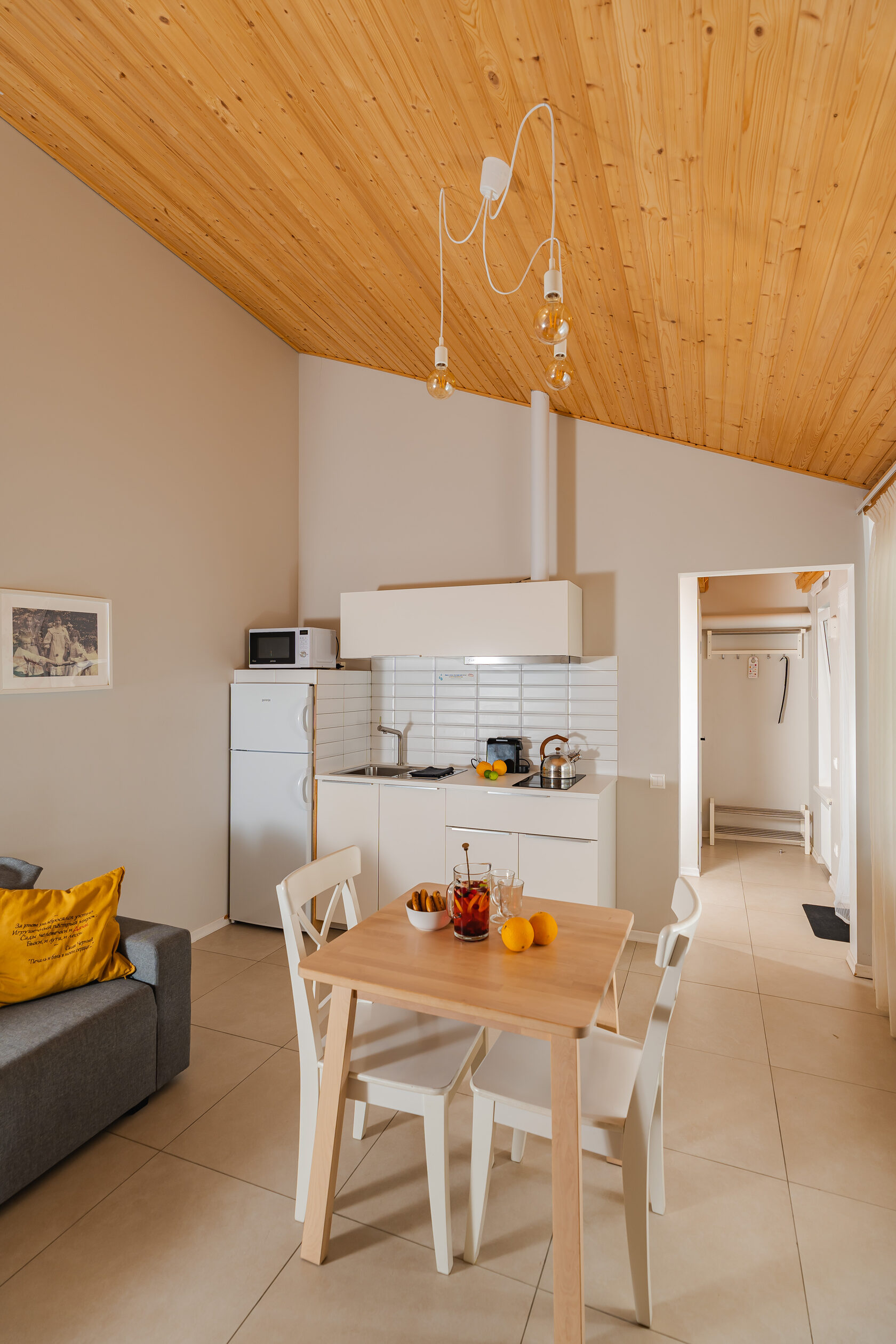 холодильник, СВЧ печь, посудомоечная машина (в Больших Дачах), индукционная плита и вытяжка, кофе-машина Nespresso, большой ЖК-телевизор.