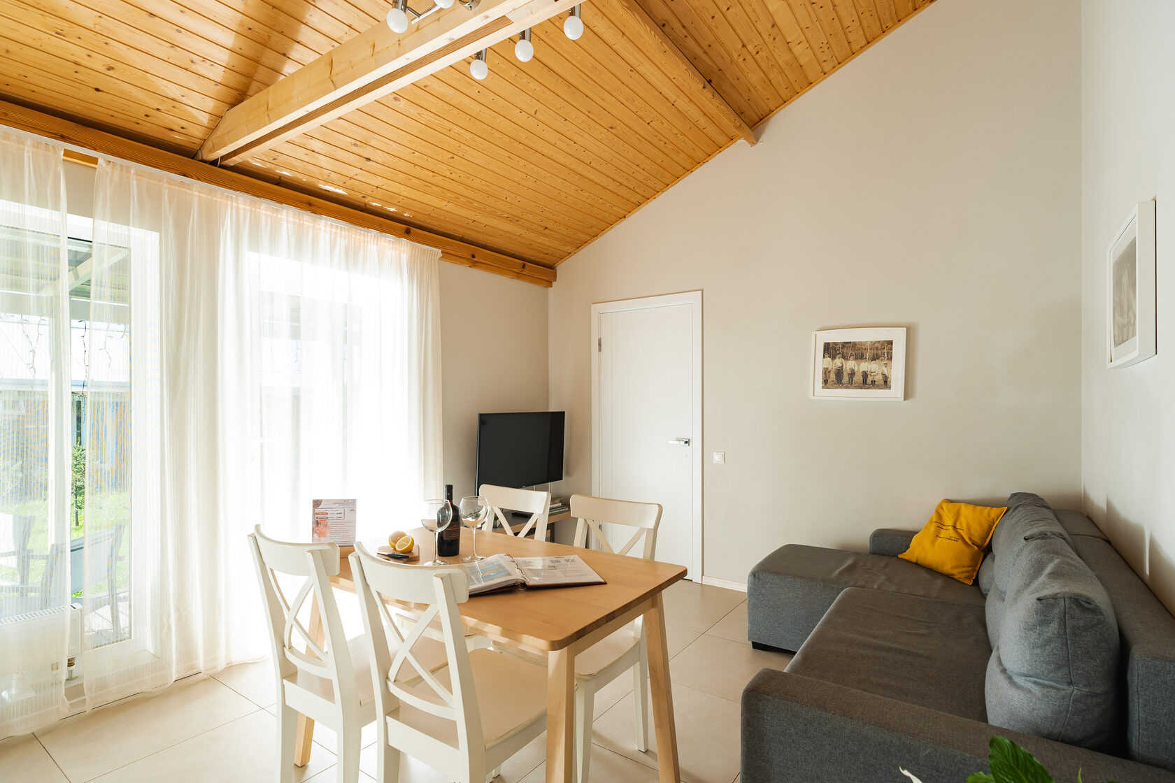 На каждой Даче просторные террасы, панорамное остекление, отдельные хозяйственные комнаты со стиральными машинами, цифровое телевидение и высоко-скоростной интернет, теплые полы в гостиных и душевых, сатиновое бельё и ортопедические матрасы, кухня укомплектована всем необходимым: